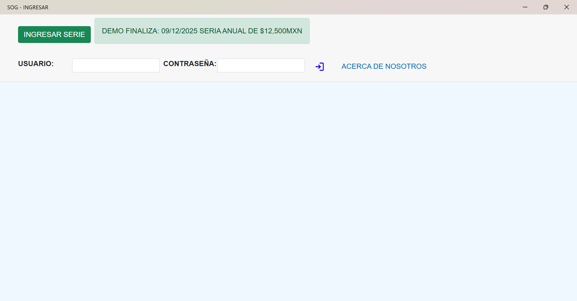 Al instalar la aplicación puedes usarla 15 dias de prueba, al presionar usar demo o ingresar una serie anual.
